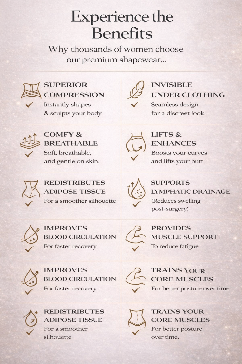 Post-Partum & Daily Support: Provides the necessary structural support for core recovery or high-performance daily shaping.