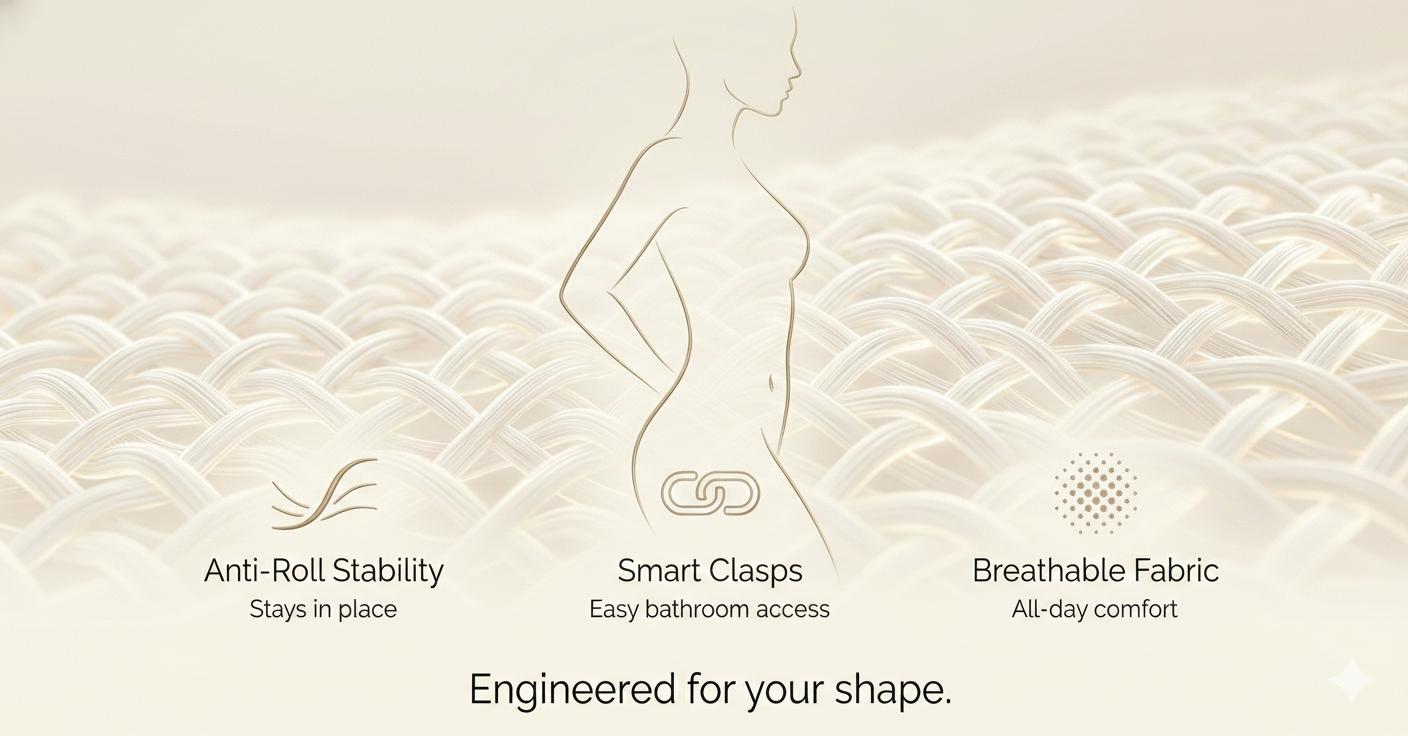 Ergonomic Compression: Strategic pressure zones that shape the body without feeling restrictive or suffocating.